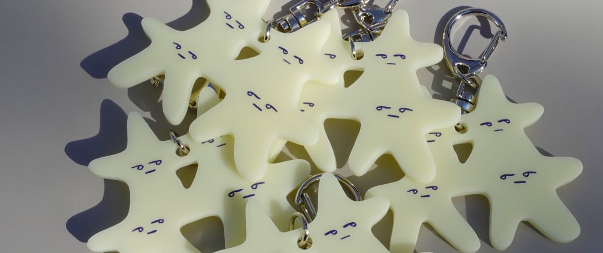 ●クリームいろが特徴の6cmくらいのキーホルダーです 「みんなで輝こう!」という気持ちをテーマにしたデザイン。 身を寄せ合ってみんなで輝きたい。 6cmくらいなのバッグやポーチにつけるととても主張たっぷりです。 ざらっとしたマットな質感で、やさしい色味が魅力です。 ※裏面には傷防止の保護フィルムが付いています。 ご使用の際はフィルムをはがしてお使いください。
